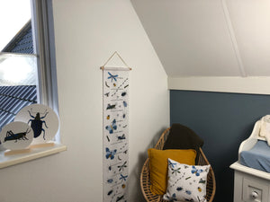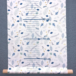 De groeimeters worden gemaakt van stof en worden geleverd met houten stokken en een leerlook touwtje om hem op te hangen. De groeimeters zijn 150 cm lang. Leuk om toe te voegen aan de kinderkamer. Nu kun je heel mooi de groei van je kindje bijhouden!