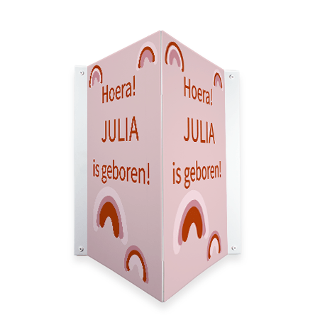 Hoera! Jullie meisje is geboren! Laat iedereen het weten via een geboortebord aan het raam.