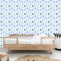 Breng een frisse en natuurlijke sfeer in de kinderkamer met dit stijlvolle lichtblauwe behang met groene en blauwe bladeren. Het kleurgebruik en het blad design zorgen voor een kalme uitstraling die perfect past in een moderne en kleurrijke babykamer, peuterkamer of kinderkamer.