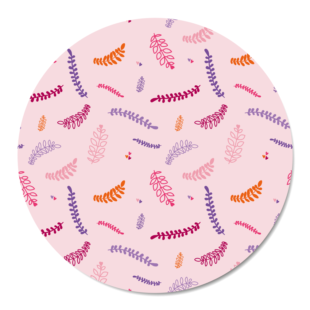 Breng een vleugje natuur én kleur in de kinderkamer met deze prachtige muurcirkel met bladeren en takken in een zachte maar levendige kleurencombinatie. De lichtroze achtergrond gecombineerd met accenten in donkerroze, oranje en paars zorgt voor een warme, speelse sfeer die perfect past in een meisjeskamer of kleurrijke kinderkamer.